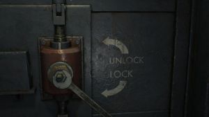 With the Security Level 1 Wristband, run back to the previously locked area next to the kitchen. There should be a zombie walking around here. Work your way through the hallway and enter the first room, which is the Custodian’s Room. It has a typewriter and a storage chest. There’s also a Wrench next to the typewriter and another lockpick in the room.