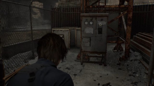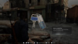 There’s another one on the floor that you can’t see, so just shoot it. Go through the turnstiles and open the locked door leading to the very first area. Go through the streets and head straight to the BSAA container near Cafe Oasis.