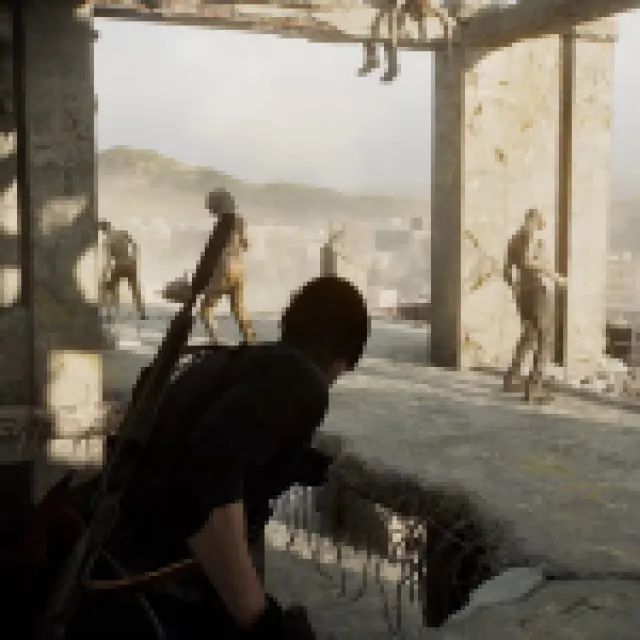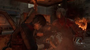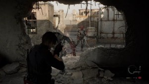 Head up the staircase and the way should be straightforward. Once you reach the other side of the apartments, an infected BSAA agent comes back to life. Shoot the head until they are dead since they have body armor. Jump down, and there should be more BSAA agents, including one with an SMG and a helmet. Keep shooting it until the helmet goes off, and keep shooting until they die. I suggest using the shotgun to break through the helmets.