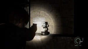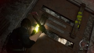 Continue forward to the other room at the end of the hallway. Ignore the zombie smashing the gate underground and move forward. Take the Gunpowder (Large) from the shelf. You can’t open the door without the crank, but there’s a hatch going down.