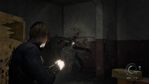 The story starts with Leon exploring the streets of East Raccoon City. The area is spacious, but there’s nothing much to obtain here apart from a destructible box near the parking area.