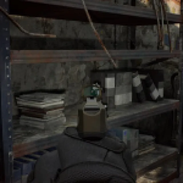 Take the Zipline taking you to the other side. Go through the broken buildings. Take the Scrap in the trash can and the ammo on the desk.
