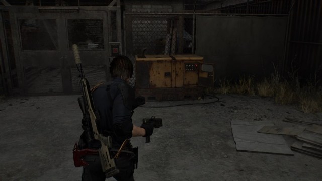 Fill the generator with fuel near the power grid you lowered the bridge to. Press the button, go inside, and take the ladder up. Open the container and grab all the ammo, healing, and Scrap. Jump down the other side and turn right after the red container to take another piece of Scrap.