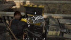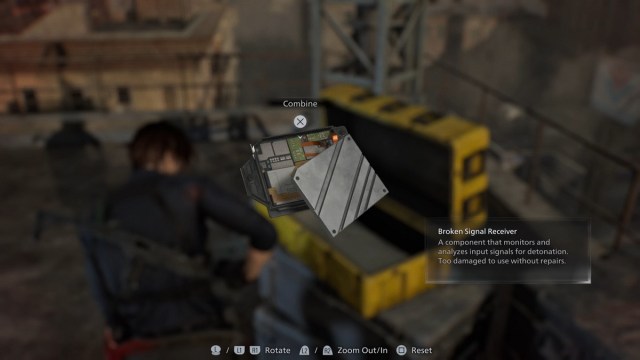 Look behind you and take the Signal Receiver inside the yellow container. Combine the Signal Receiver and the Disruptor with the Repair Kit by examining them. Loot whatever you missed around the rooftop and head back.
