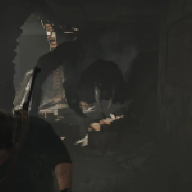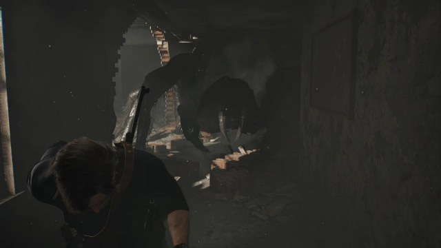 Interact with the revolving door to move forward. You’ll eventually reach a cutscene with a new enemy. You’ll have to fend off the spider boss and start in a hallway of an abandoned building. Move forward and grab any loot in your path.