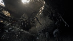 Smash through, and you’ll find several small spiders there. Use your hatchet to end them. Keep moving forward, and the spider boss will try to block you from going to the balcony. Keep going and climb the ladder. This begins the actual fight with the spider boss.