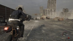 Victor will now be chasing you with a bunch of mutated hounds. You’ll have an unlimited machine pistol that holds 50 rounds in a magazine. You can easily bring down two hounds with one magazine. The motorcycle drives itself, so you just need to aim well.
