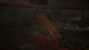 Go back to the hallway and go to the Library area. There’s a Mr. Raccoon in one of the shelves at the center. It is hidden behind one of the bottom shelves by the books. You can hear it, so chop it with your hatchet. Take the Mechanic Jack on the floor.