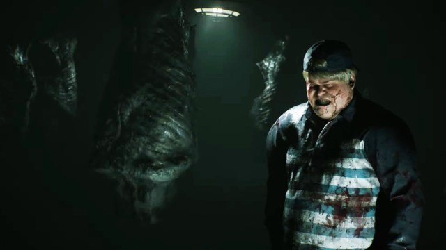 After dealing enough damage to Eddie during the thick fog phase, the boss fight will transition into phase three. This time, the fog goes away, but the hanging meat in the meat locker starts moving, and your fixed cover no longer gives you enough protection against Eddie’s long barrel pistol.