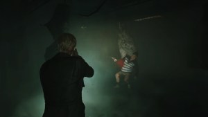 During phase one of the Eddie Dombrowski boss fight in Silent Hill 2 Remake, he will try to shoot you from a distance using his long barrel pistol. One of the best strategies we recommend is to always stay behind a lump of hanging meat and let it block shots that Eddie fires at you.
