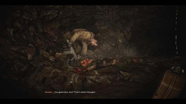 Another opportunity to get this shotgun arises during the Piece of Cake side quest. This quest is given by Squint only if you spare his life and take the side quest. He will ask you to explore a nearby cave to collect an artifact and that is where you will encounter an NPC named Slava Janitor in a cave who may have a Toz-34 on him.