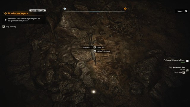 1. Mission Reward in Zaton: You will likely encounter the Saiga D-12 for the first time after completing the mission “In Search of a Guide” in the Zaton region. During this mission, you will meet the NPC Nimble, a guide who once helped Faust. After Nimble and Skif engage in a fistfight inside a cave, a cutscene will play. Once it ends, you can pick up the Saiga D-12 that Nimble drops and keep it for yourself.