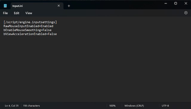 - In the Windows (or WinGDK) folder, open the Input.ini file using a text editor like Notepad or Notepad+