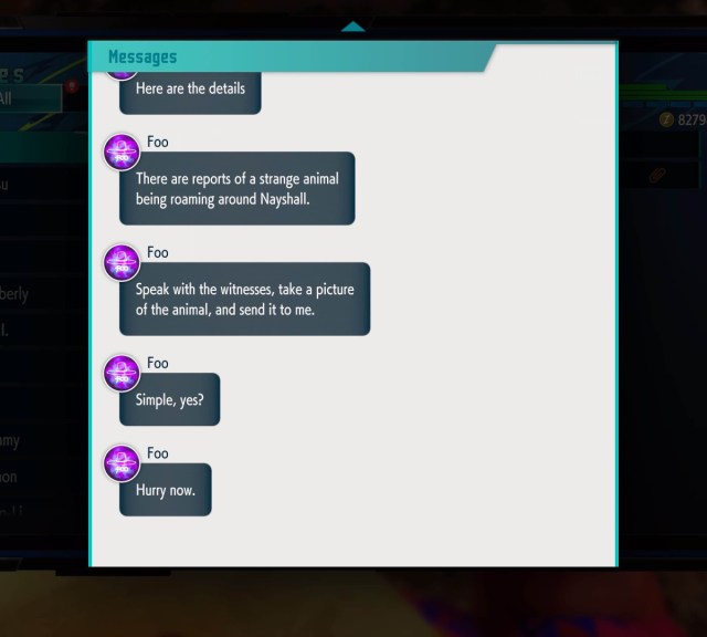 Once you’re ready to start seeking out M Bison, visit Old Nayshall in the daytime. You will receive a text from Foo beginning the series of quests that will unlock M Bison as a World Tour Mode Master. Your first order of business is to use your phone to take photographs of “unusual animals.”