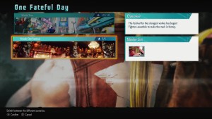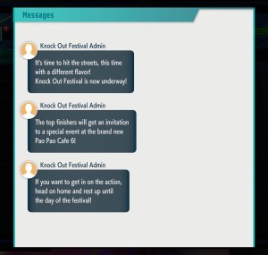 Once you have met the above requirements, enter World Tour Mode to receive a message about the Knock Out Festival. To begin the activities associated with the festival, go to your hangout in Metro City where you change the time between day and night. There will be a new option, “One Fateful Day.” Selecting One Fateful Day will allow you to transport between World Tour and Knock Out Festival. Knock Out Festival is a smaller pocket of World Tour, with three maps relating to Terry.