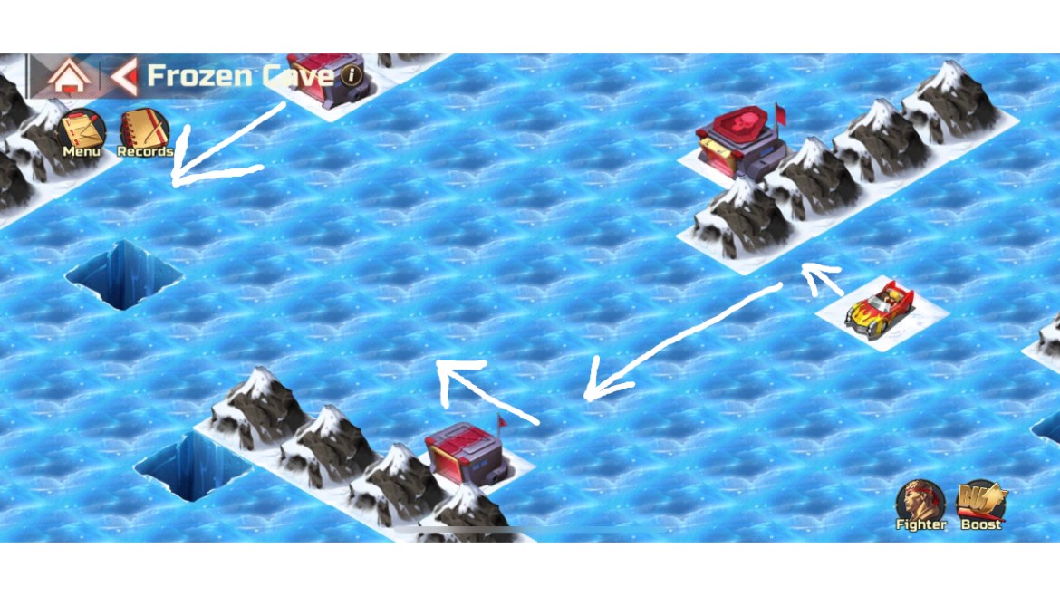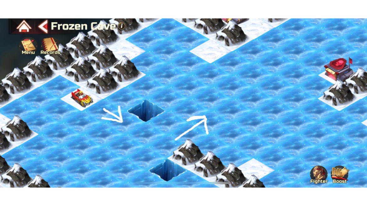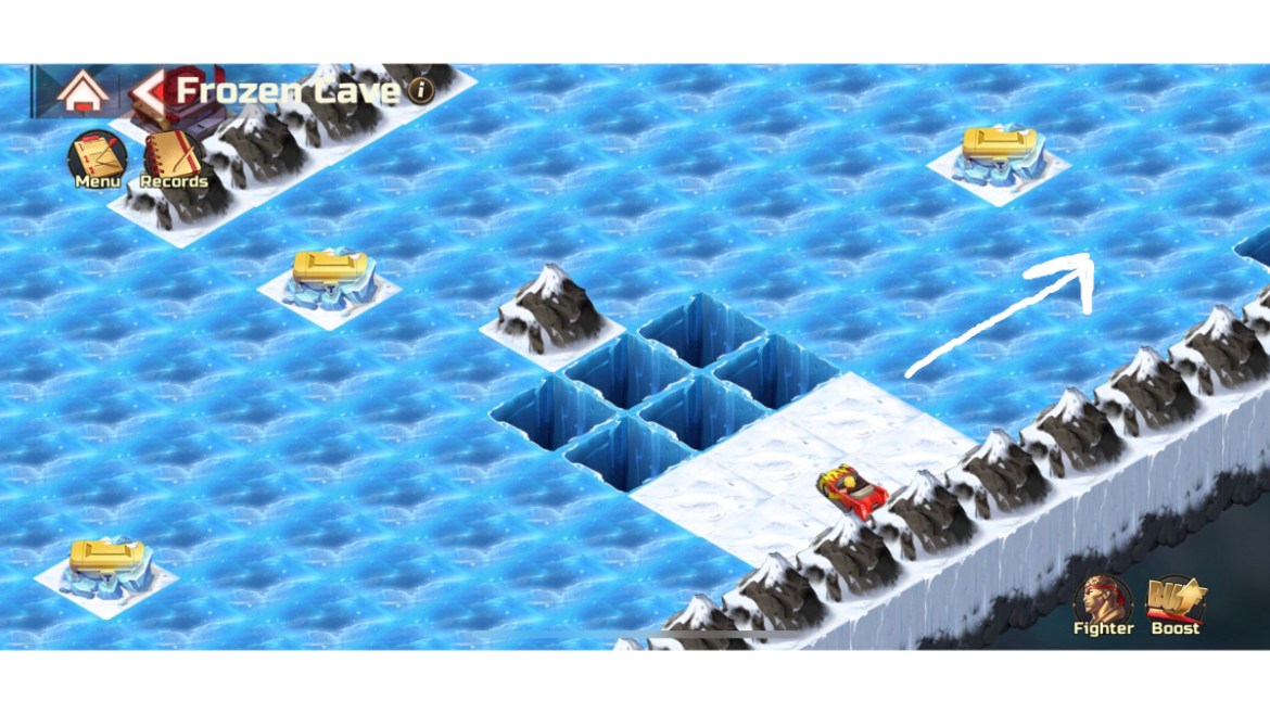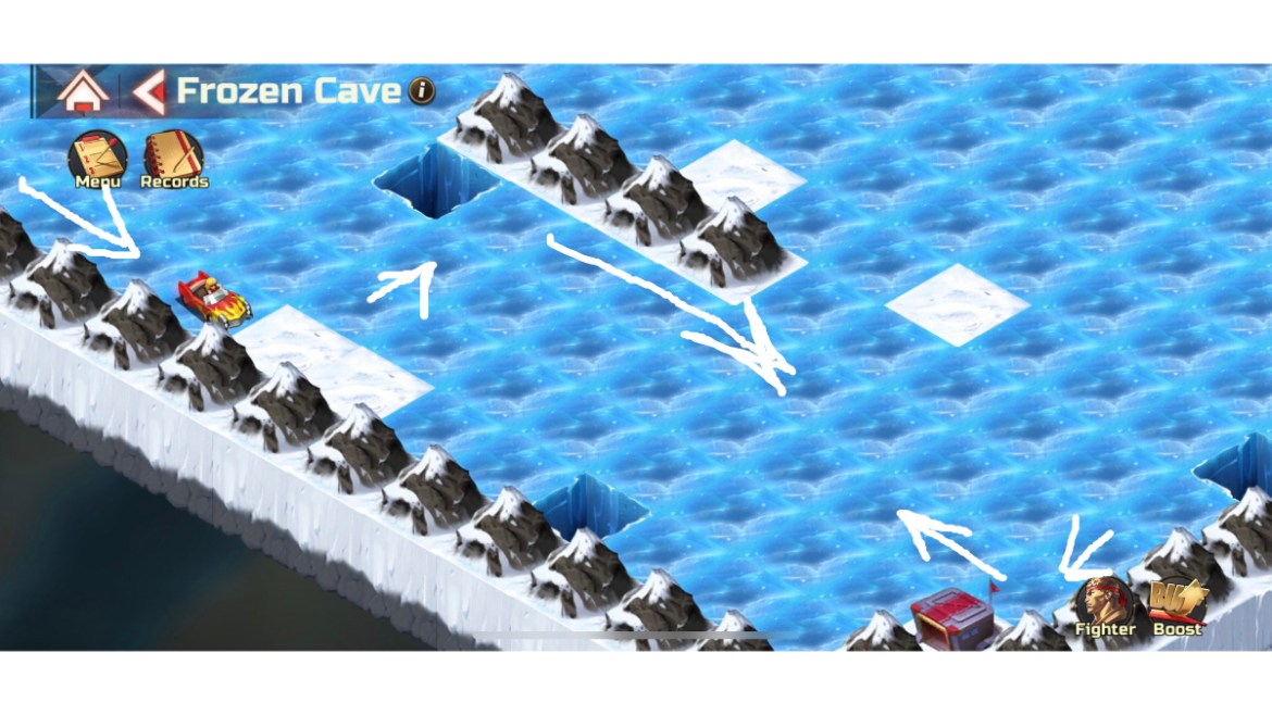 Hello everyone. I, like most of you reading this, had the displeasure of hopping into the Frozen Cave, one of Street Fighter Duel’s Global Operation Trial Grounds stages. This level may be the most miserable ice-sliding tile puzzle known to man. Somehow I’ve made it through after more time than I ever wanted to spend on a puzzle like this. To spare anyone still trying the same level of anguish, I’ve made a little guide, pointing out the correct sequence of moves. So here’s how to make it through the Frozen Cave in Street Fighter Duel.