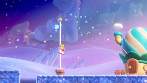 To obtain the final Wonder Seed, complete the level without collecting the Wonder Flower. Continue past it to reach the regular exit, just past the hidden Wonder Flower, random holes, and platforms with enemies. This jump is similar to the one needed for the third coin. Hit the blue flower above an Outmaway to transform a nearby platform into an ice block, use it to reach the flagpole, and reveal the last seed.