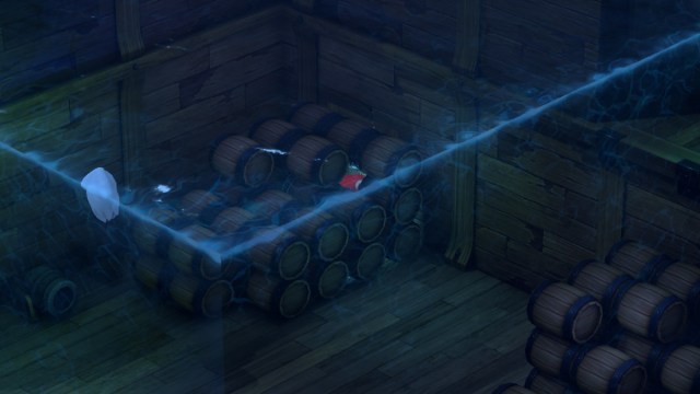 It’s not obvious at first glance, but you can actually enter the maze of barrels. Walk until you bump into the wall between the cannon and the barrels, then turn right and keep going—you’ll be behind the barrels and can enter the hidden door.