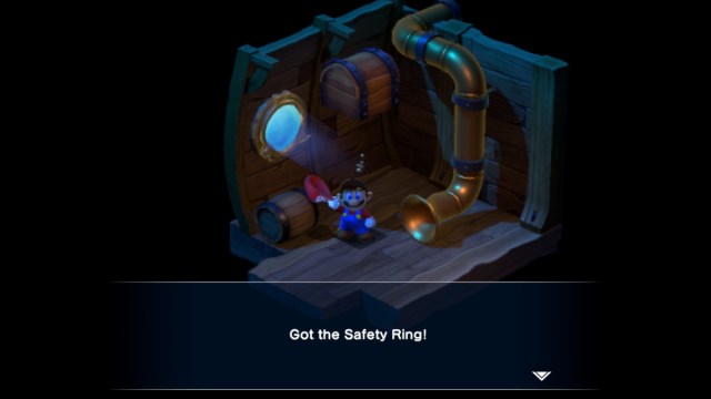 The Safety Ring (not the Safety Badge) is one of the best accessories in the game, and it can be easy to miss. In the Sunken Ship, you’ll come across a large underwater space with a whole lot of barrels and a group of Bloopers. Behind the barrels is a bit of light peeking out.