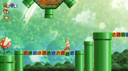 Once you’re on top of the half-hexagon block, use the red warp pipes secret exit to travel to a new area. Here, continue forward to a green warp pipe. Take it, then progress until you come to the Goal Pole.