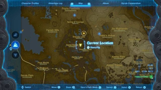 The best and fastest way to get to Popla Foothills Skyview Tower is to fast travel to the Skyview Tower. If you haven’t yet unlocked the tower, you’ll need to make your way southeast of Kakariko Village and head to the coordinates provided in the header above and the map below.