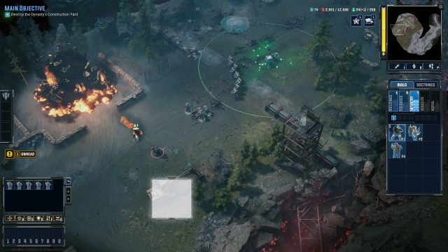 The mission starts by giving you control of a few Field Scouts that serve as your default infantry units. They’re cheap to recruit and do decent damage. You’ll soon also have access to Drone Operators, who are very useful as they provide reconnaissance when you switch to the Drone, and also deal tremendous damage.