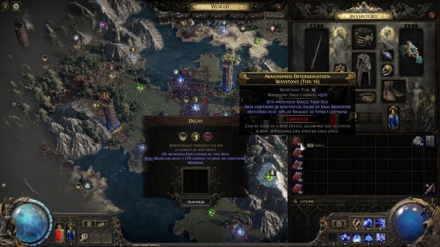 As for the 7th and 8th Map Boss skill points, you need to find another node that is Irradiated and has Coalesced Corruption on it. Once you find one, you also want to corrupt a Tier 15 Waystone with a Vaal Orb until you get a Tier 16 Waystone. Corrupting a Waystone has different results, so it may take around four to six corruptions to get a Tier 16 Waystone.