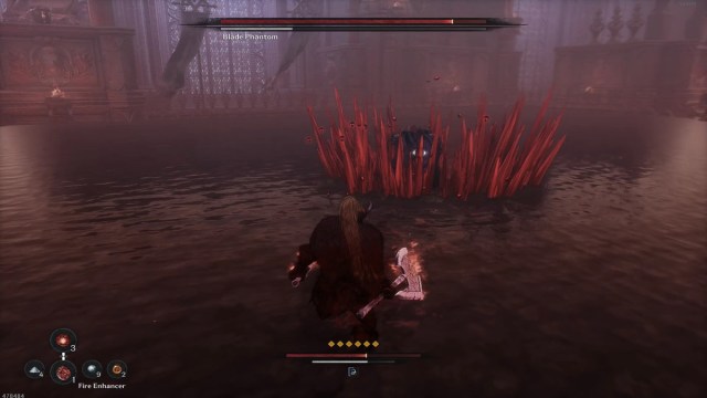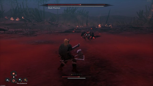 Unlike the Yetuga boss, the Blade Phantom has a dim, silver-colored stamina bar similar to Khazan’s. The bar decreases whenever the boss executes attacks and replenishes when it disengages from combat. However, unlike Khazan’s smaller stamina bar, the Blade Phantom’s bar is significantly larger, allowing for extended attack sequences.