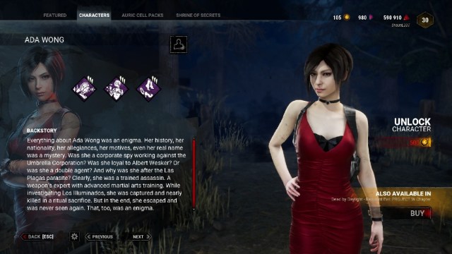 In her own franchise, Ada Wong is always known for being sneaky and almost cat-like with her reflexes and skillset. Those skills translate perfectly to her survival skills now that she’s still in the world of Dead by Daylight. Even after taking a blow that would bring a survivor tumbling down, she’s calm and collected throughout her injury process, and is one of the quieter survivors in DBD.