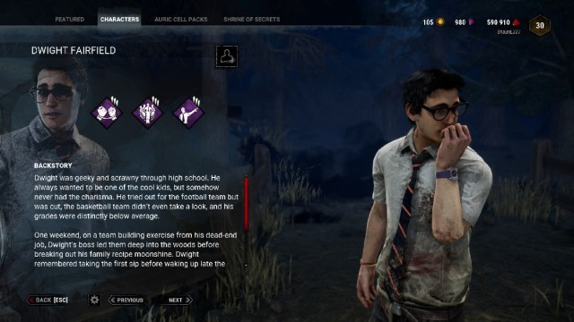 Not only is Dwight almost the face of the Survivor portion of the game, but he’s also one of the best ones to use when you first get started. If he was a pin, you wouldn’t be able to hear him even in the quietest of rooms if he drops. An all-around great starter quiet Survivor, and someone that you can bring along for the long haul.