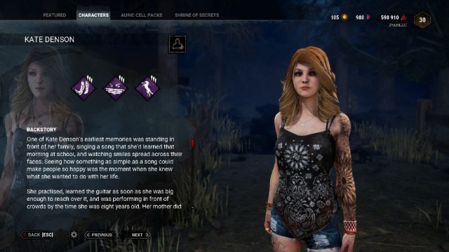 If you’re hoping to build up a survivor to use for the longest time, Kate Denson is your girl. With a set of perks that’ll put most Killers to shame, and the ability to keep herself hidden with a 3-second dropoff of her running path, Kate is perfect for those who are looking to be a little bold while being sneaqky throughout their match. She is easily one of the best quiet DBD surviors.
