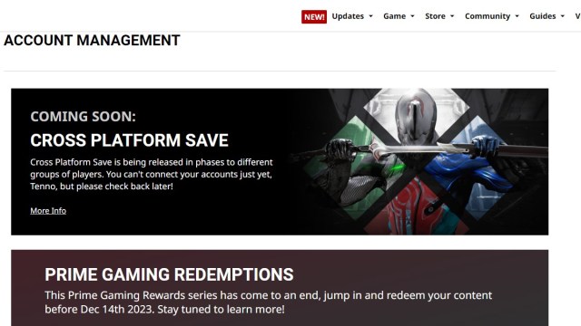If the banner says “Coming Soon” for you, then there’s a good chance that you’re currently ineligible to activate it. That isn’t anything on you and rather has to do with how cross-platform save is being debuted. Digital Extremes is rolling the feature out in staggered groups rather than all at once to ensure the feature is added smoothly. However, the team plans to have everyone onboard for cross-platform saving by the end of 2023, so you should see that change in the coming weeks.