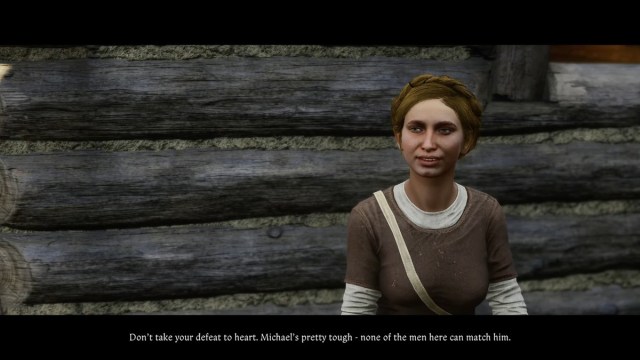 Even if Henry has mastered combat skills and boasts high strength and vitality, the fight with Michael is scripted to end in Henry’s defeat, leaving him badly beaten. Klara watches the entire fight from outside the arena, and once it is over, you can approach her to start a conversation.
