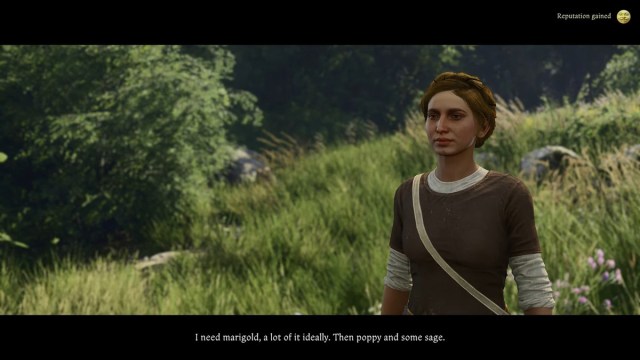 This triggers the quest Accompany Klara on a Walk. During the walk, you will chat further, and she will task you with gathering Marigold, Poppy, and Sage flowers. Once you have collected the herbs, Klara will present you with a riddle. Answering it correctly will unlock the chance to romance her.