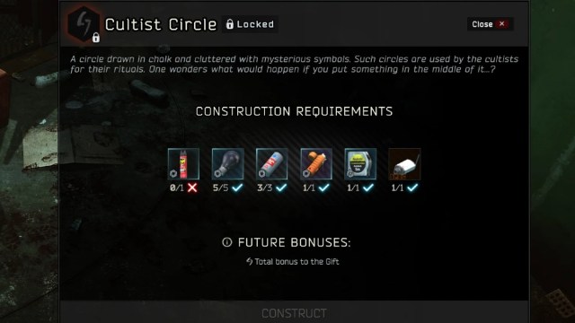 The Cultist Circle is a constructible area in your hideout that requires the following materials: