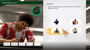 If you fail a quiz, you may be eager to jump back in again after learning the correct answers at the end. Beware, however, as the quiz may throw a few additional questions into the mix, so make sure that you know all of your SEGA mascots before trying Tier 1 again. For example, I failed the first time around, and there were no Virtua Fighter questions on my first test. The second time I took it, however, it was asking me to pinpoint a specific character.