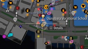If you’re hoping to get to Ounabara Vocational School, you’ll want to head toward the Southwest portion of the map, as it’s located off of Habor Street. This particular part of the map is a 7 out of 10 Threat Level, so you’ll want to make sure that you’re either ready to avoid fights, or powerful enough to defeat the enemies in this area — they are typically Level 30 near the school zone. Maybe consider taking on some Dungeons before venturing into this area.