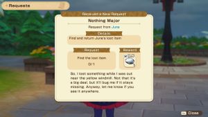 In Story of Seasons: Grand Bazaar, June asks you to find her lost item. This triggers a request called Nothing Major, which allows you to progress your relationship with her once you’ve completed it.