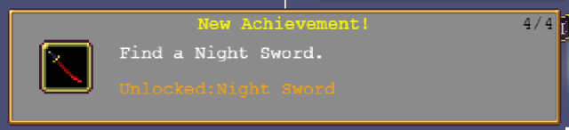 - In Picture 3, you see a skeleton emerging from the ground and the Night Sword next to it. You do not need to defeat this skeleton boss to grab the Night Sword, but by all means please do, because he is pretty weak and yields a Treasure Chest.