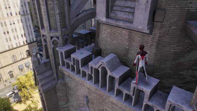 The science trophy is found at the church in the Financial District. You’ll find the small cube on a ledge on the rooftop of the church’s tall tower. As you get closer, you’ll notice the interact prompt. Hit Triangle when playing as Miles to get a quick cutscene. The trophy will pop, and you’ll be all set.