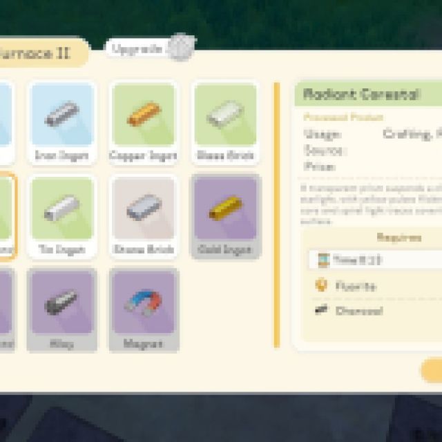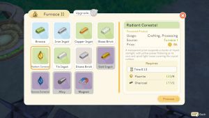 Apart from using Flourite for unlocking waypoints and even using it as ammo for the Slingshot, its main use is for crafting the Radiant Corestal through the Furnace. Radiant Corestal is important to get more money, especially since you’ll unlock other equipment like the Feeder and the Jam Maker early in the playthrough. The Feeder needs three Radiant Corestal while a Jam Maker needs two Radiant Corestal.