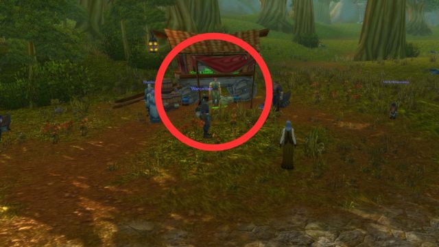 If you don’t have gloves equipped, you can either get a pair from a mob drop or purchase Thin Cloth Gloves from Dermot Johns, a merchant stationed outside Northshire Abbey (map coordinates 48, 41).