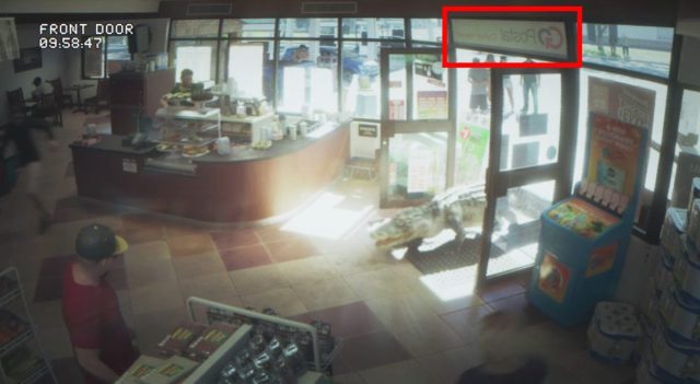 It appears that Go Postal will again be included in GTA 6 as your one and only postal service provider. In one of the scenes where an alligator is seen entering a shop (as seen in the image above), you can see the Go Postal logo on the front door.